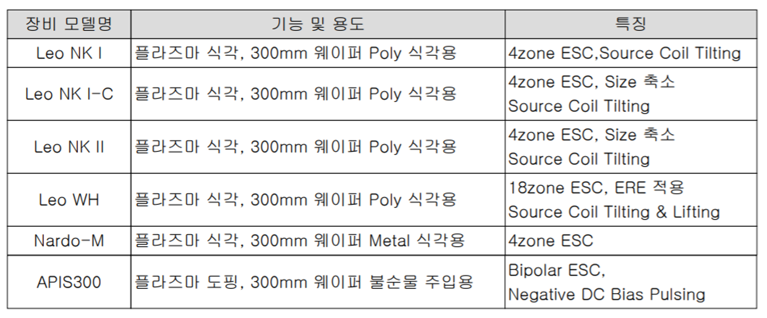 전반적으로 300mm Poly Etcher와 플라즈마 도핑 장비가 주력 제품으로 보입니다.