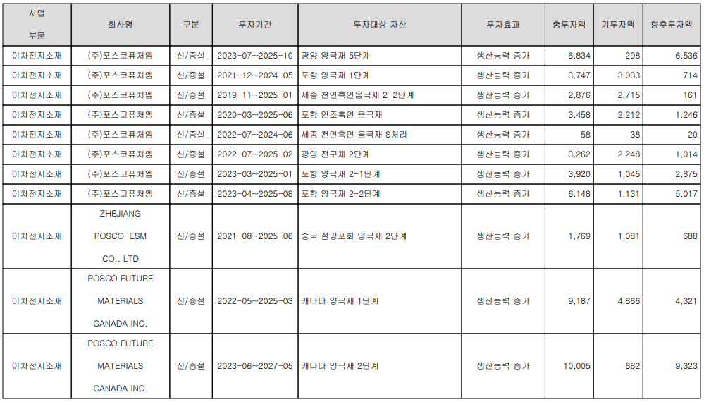 당사는 지난 1분기 매출액의 1.1%인 121억 원을 투입하면서 2차전지 양극재의 성능 향상 및 인조 흑연 그리고 탄소중립을 위한 내화물 등의 연구 개발을 수행하고 있습니다.