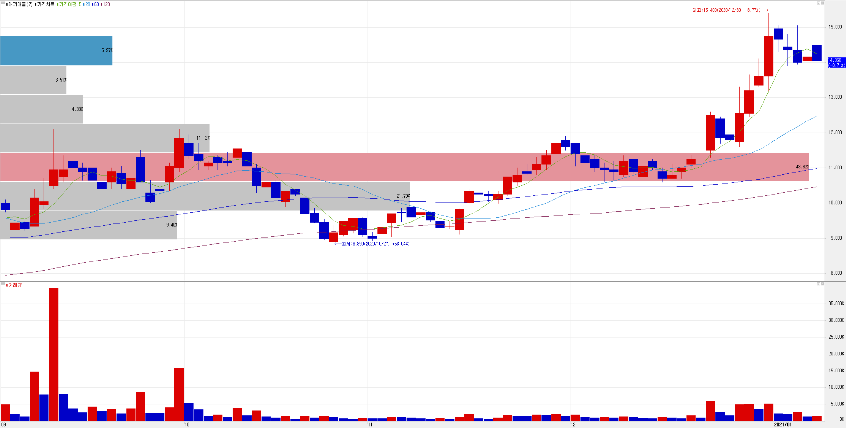 최근 1개월간 수급에서는 개인과 외국인이 주로 매도했고 기관, 특히 연기금이 매수우위를 보이고 있습니다. 연말 연시를 전후로 반도체 관련주의 움직임이 자동차 관련주 순환매로 돌아선 것 같습니다. 당분간 큰 방향성 없이 횡보하지 않을까 생각되며 1월 후반 실적 시즌이 시작되는 시기에 다시 한번 변동성이 나타날 듯합니다. 그때까지 관망하는 자세를 취할 생각입니다. 당사의 4분기 영업이익은 컨센서스 기준 115억이지만 실제 영업이익은 소폭 상회할 것으로 생각됩니다.