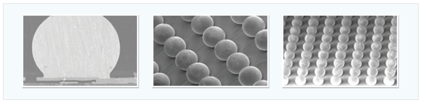 | Cu Pillar Bump | Cu pillar Bump는 Solder Bump의 1/3 이하인 40um 이하 피치의 고밀도 패키지 구현 가능. 우수한 열방출 성능 |