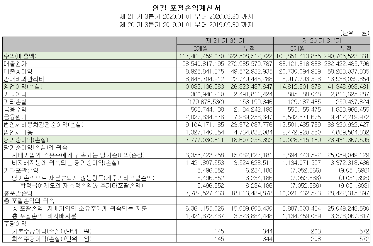 손익계산서 - 2020년 3분기 실적