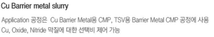 각 반도체 제조 목적 제품에 따라 입자별로 적용이 가능합니다.