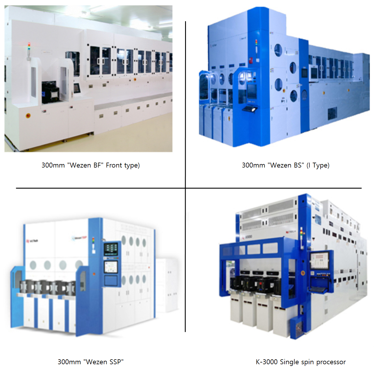케이씨텍의 디스플레이 제조용 장비에는 Wet Station, Cleaner, Coater & Track system 등이 있습니다.