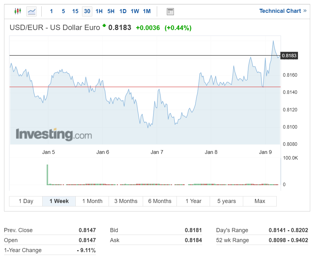 유로화는 지난 주 중반까지 약세를 보이다 바이든 행정부의 블루웨이브가 현실화되자 이내 달러 강세로 돌아서는 추이입니다.