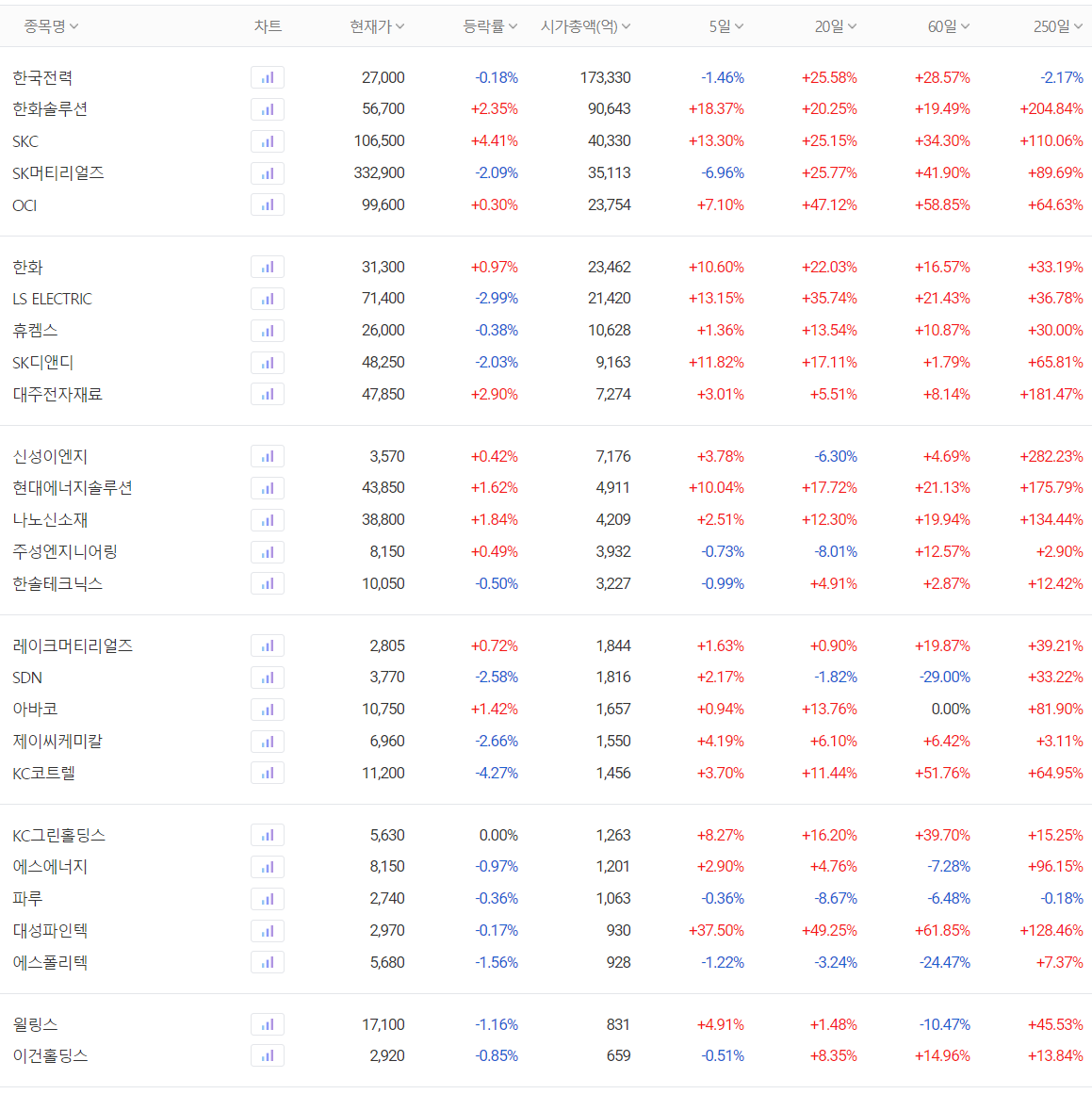 신재생에너지(태양광) 관련주 대장주 주간 시황