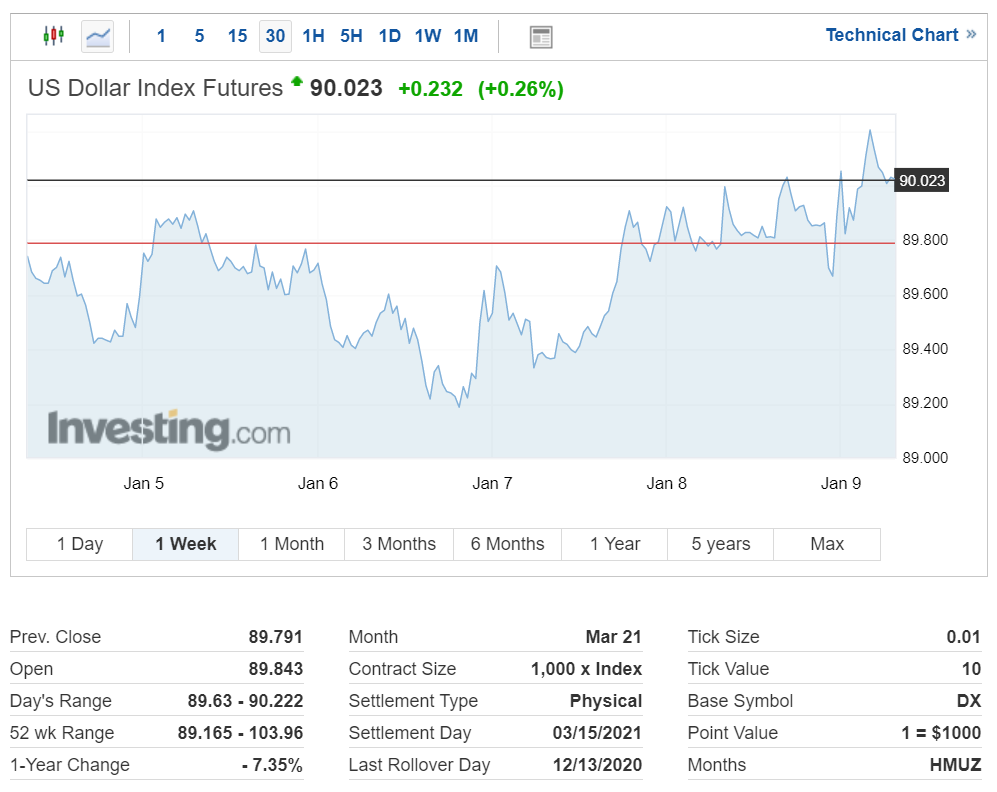 곧 취임할 바이든 행정부가 추가 부양 안을 확대한다는 소식이 전해지면서 미국 국채 가격은 하락했고, 10년 만기 금리는 상승하면서 1.119%를 기록했습니다.