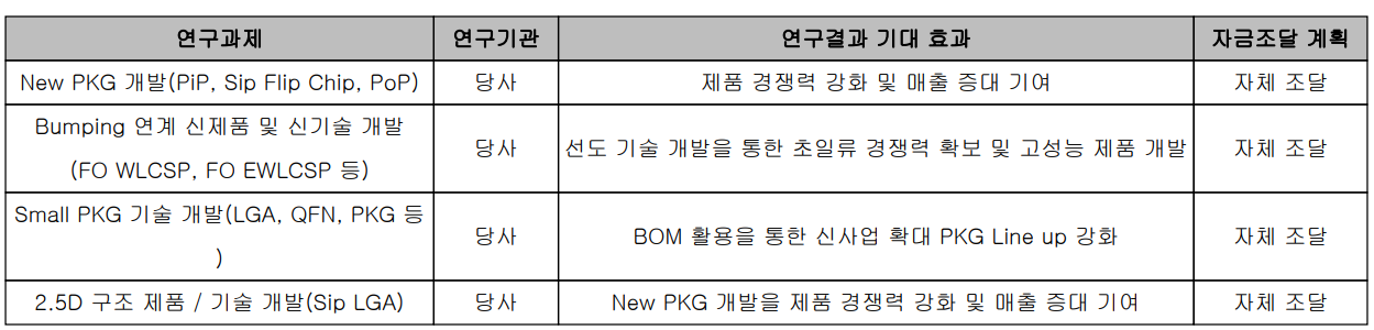 시스템 반도체 (모바일 등) 칩이 소형화 고단화되어 가는 추세에서 지속적인 범핑 기술을 기반으로 한 패키징 기술에 대한 연구 개발을 하고 있는 것으로 보입니다.