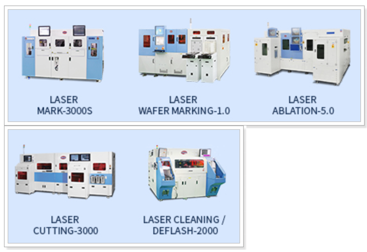 당사의 주요 제품에는 반도체 후공정에 사용되는 SINGULATION(개별화) 시리즈인 VISION PLACEMENT, Bonding 장비, EMI Shield 및 레이저 응용 기술 기반의 다양한 반도체 공정용 장비가 있습니다.