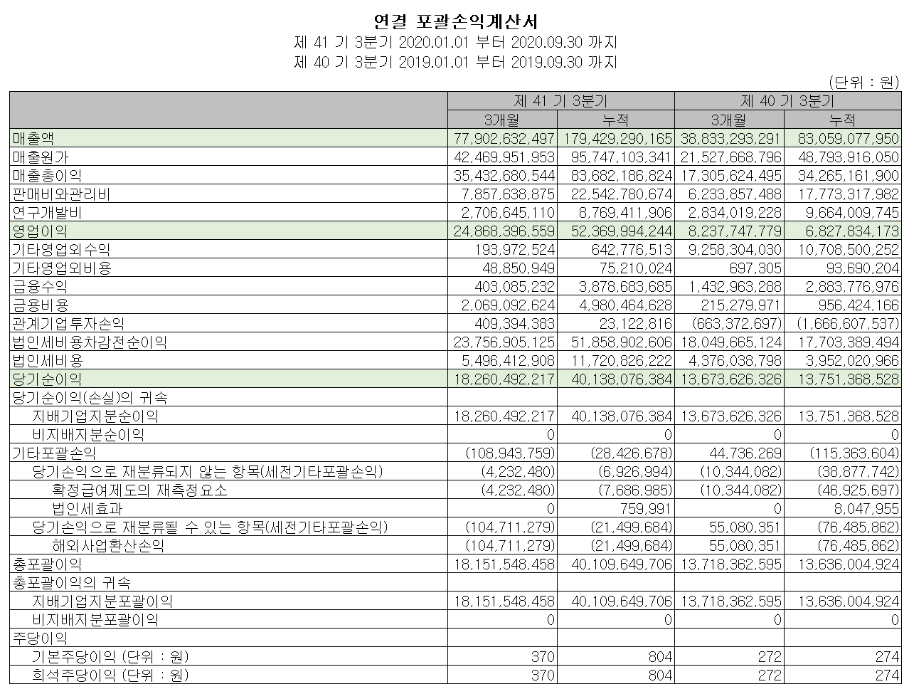 4분기 매출액은 776억 원으로 연매출 2557억 원으로 컨센서스를 93억 원 상회하는 호실적을 발표했습니다.