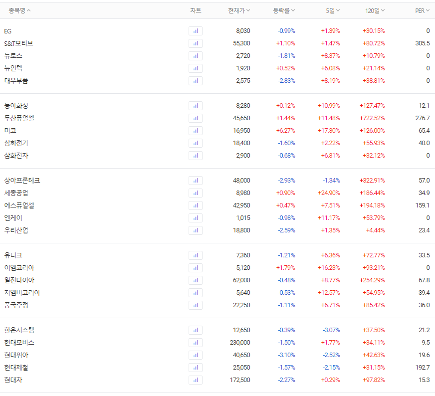 수소차 관련주는 지난 주 대부분의 종목들이 좋은 흐름을 보였습니다. 앞으로 뉴딜 정책 관련하여 정부 관련기관과 해당 기업들의 움직임을 주의 깊게 살펴봐야 할 것 같습니다