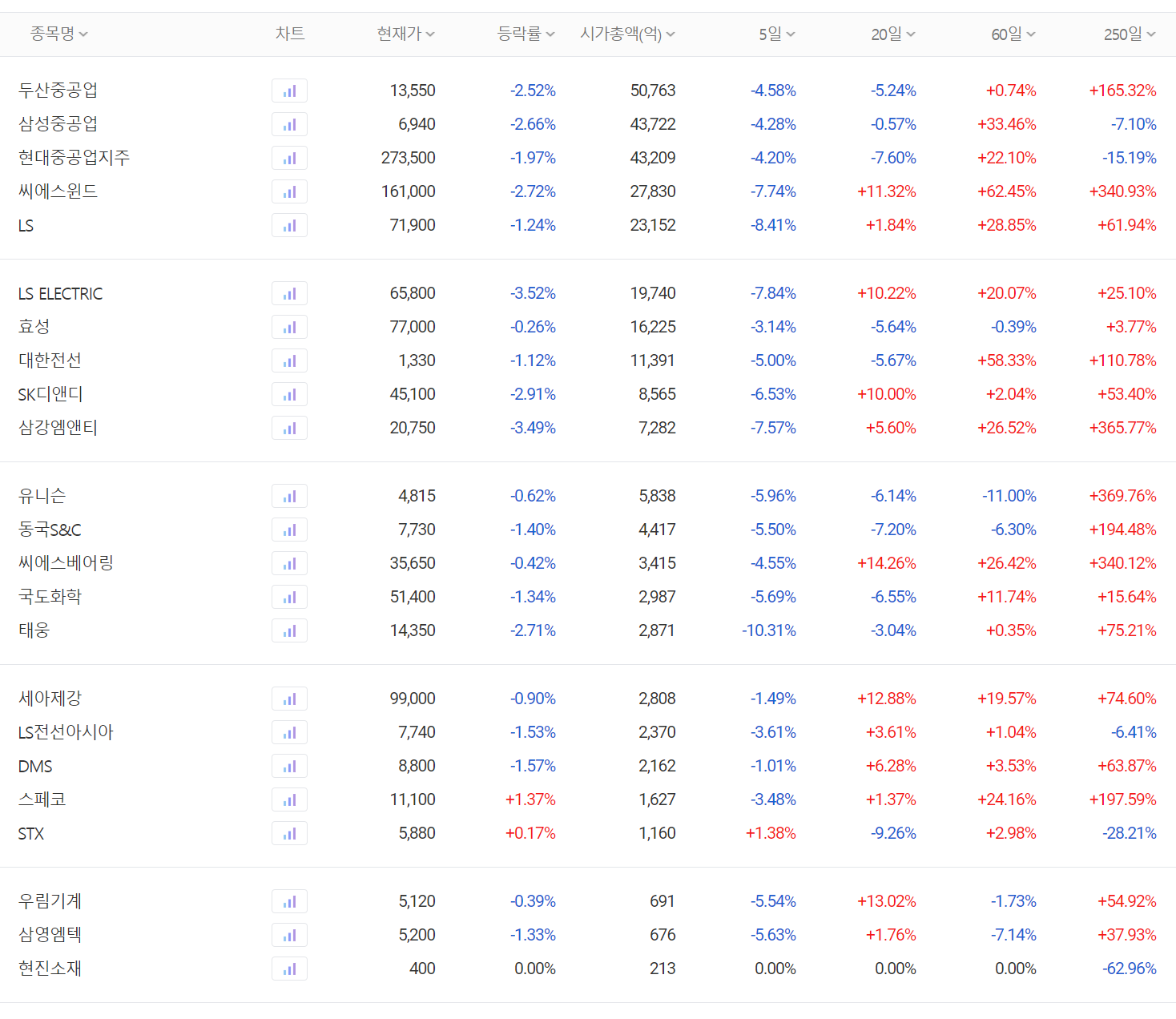 재생에너지(해상 풍력) 관련주 대장주 주간 시황