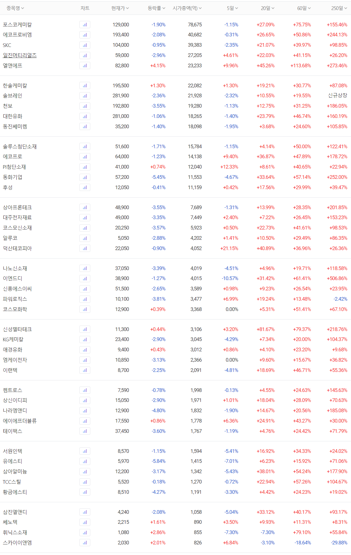 전기차 배터리(2차전지) 소재 관련주 대장주 주간 시황