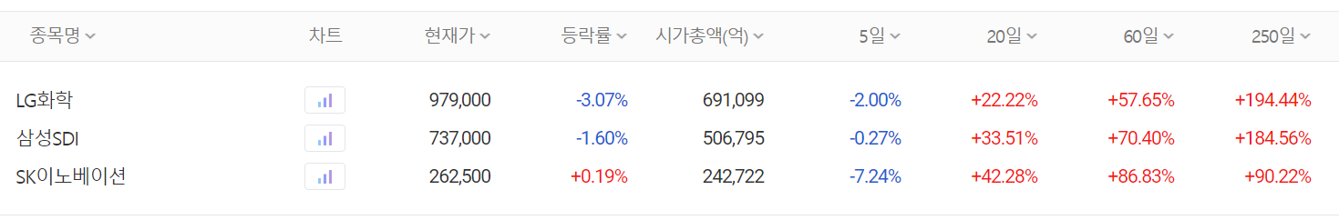 전기차 배터리 3사 주간 시황