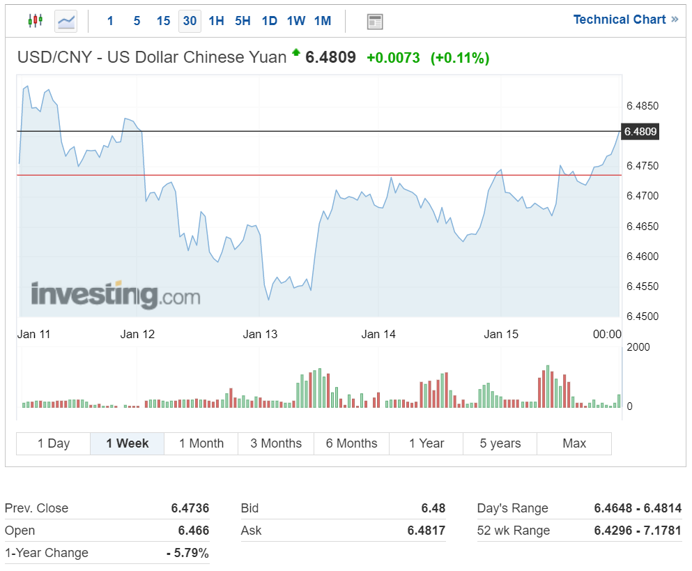 달러 대비 위안화 환율은 지난주 한때 1달러당 6.45위안까지 하락후 재차 반등하면서 6.4809위안에 마감했습니다.