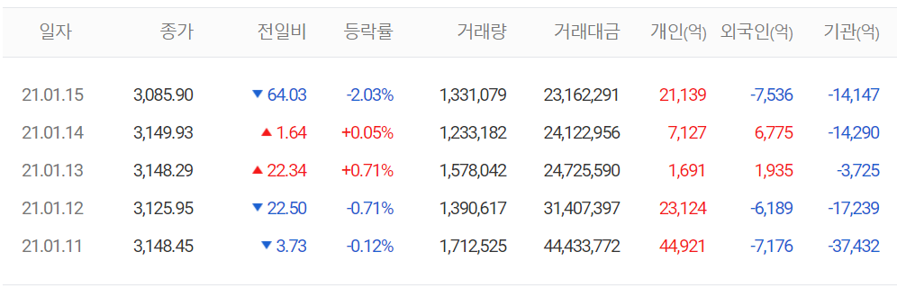 지난 주 코스피는 5 거래일 동안 66.28포인트(2.1%) 내린 3085.90에 거래를 마감했습니다.