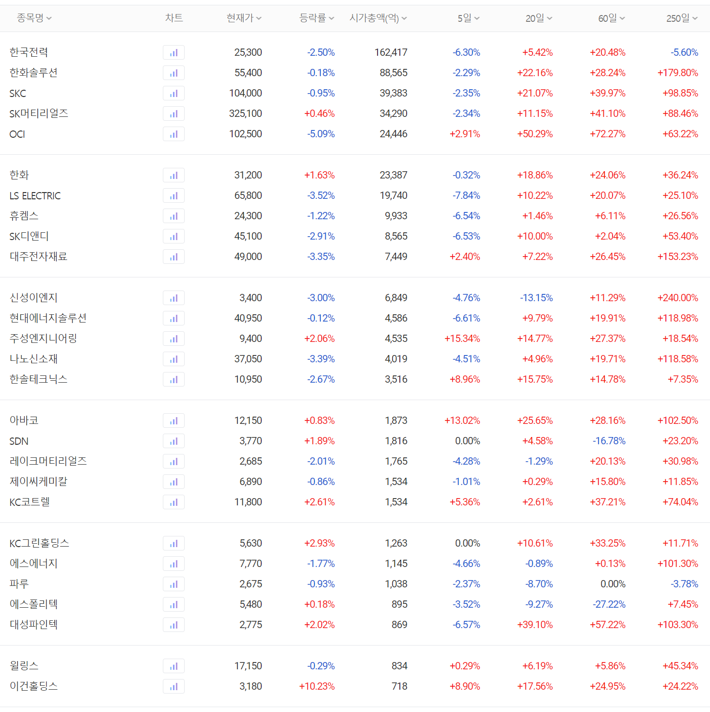 신재생에너지(태양광) 관련주 대장주 주간 시황