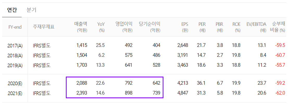 컨센서스를 봐도 2020년 연말 결산이나 2021년도 아름다운 성장을 추정하고 있습니다.
