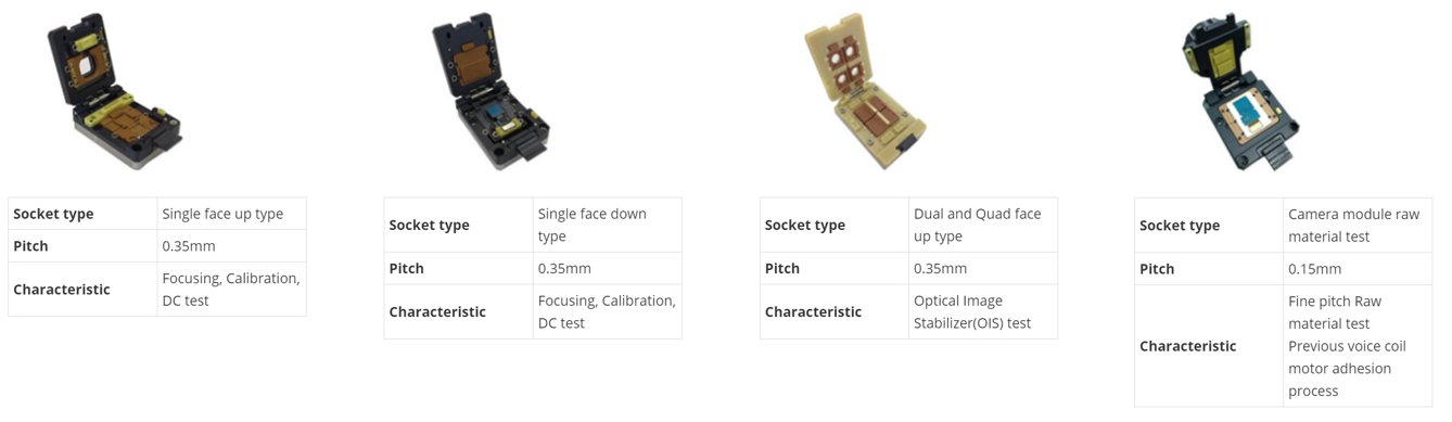커버가 장착된 CCM 모듈 소켓으로 SMD(Surface Mounting) 타입의 모든 제품에 적용할 수 있고, 커넥터에 정확한 접속을 할 수 있는 기능을 포함한 토털 제공합니다.
