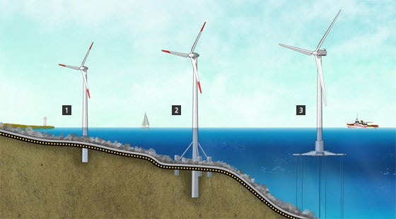 해상 풍력 발전에는 다음 3가지 방식이 있습니다.