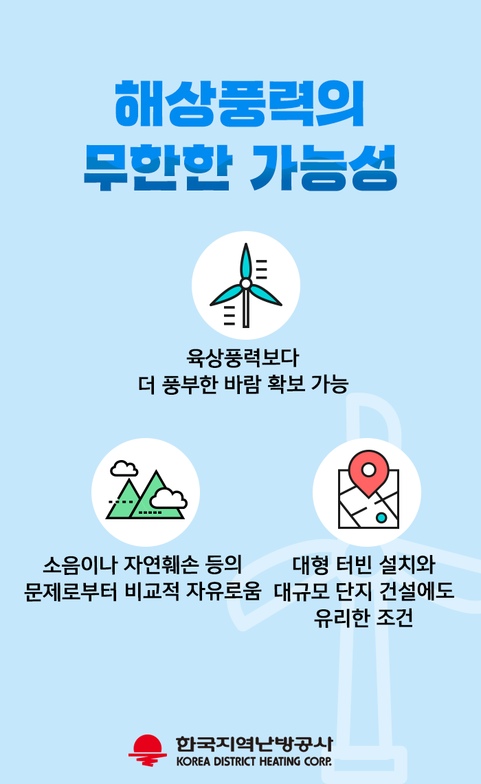 우리나라에는 강원, 제주, 그리고 최초의 해상 풍력 발전소인 군산 등 여러 군데 풍력 발전소가 있으나 여러 가지 여건상 산간지방보다는 해상 풍력을 이용한 발전이 전망이 밝습니다.