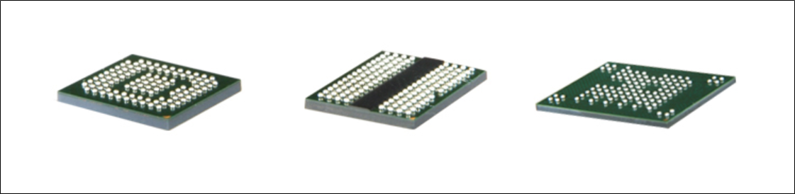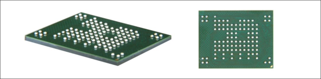 FBGA방식은 일반적으로 substrate를 이용하며, wire bonding, molding 기술을 적용하여 ball pitch가 1.0mm 이하인 ball grid array 형입니다. ball 사이의 간격(pitch)은 0.5~0.8mm 정도이며, 패키지 사이즈에 따라 COB(Chip on Board), BOC(Board On Chip), MCP(Multi Chip Package) 등으로 구분됩니다.