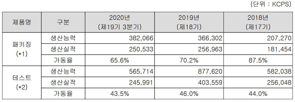 테스트 부문의 가동률이 50% 이하로 낮아보이지만, 실제 계산 방법이 설비의 휴식시간을 감안하지 않은 절대 시간으로 계산했기 때문에 거의 풀가동이라고 봐도 될 것 같습니다.