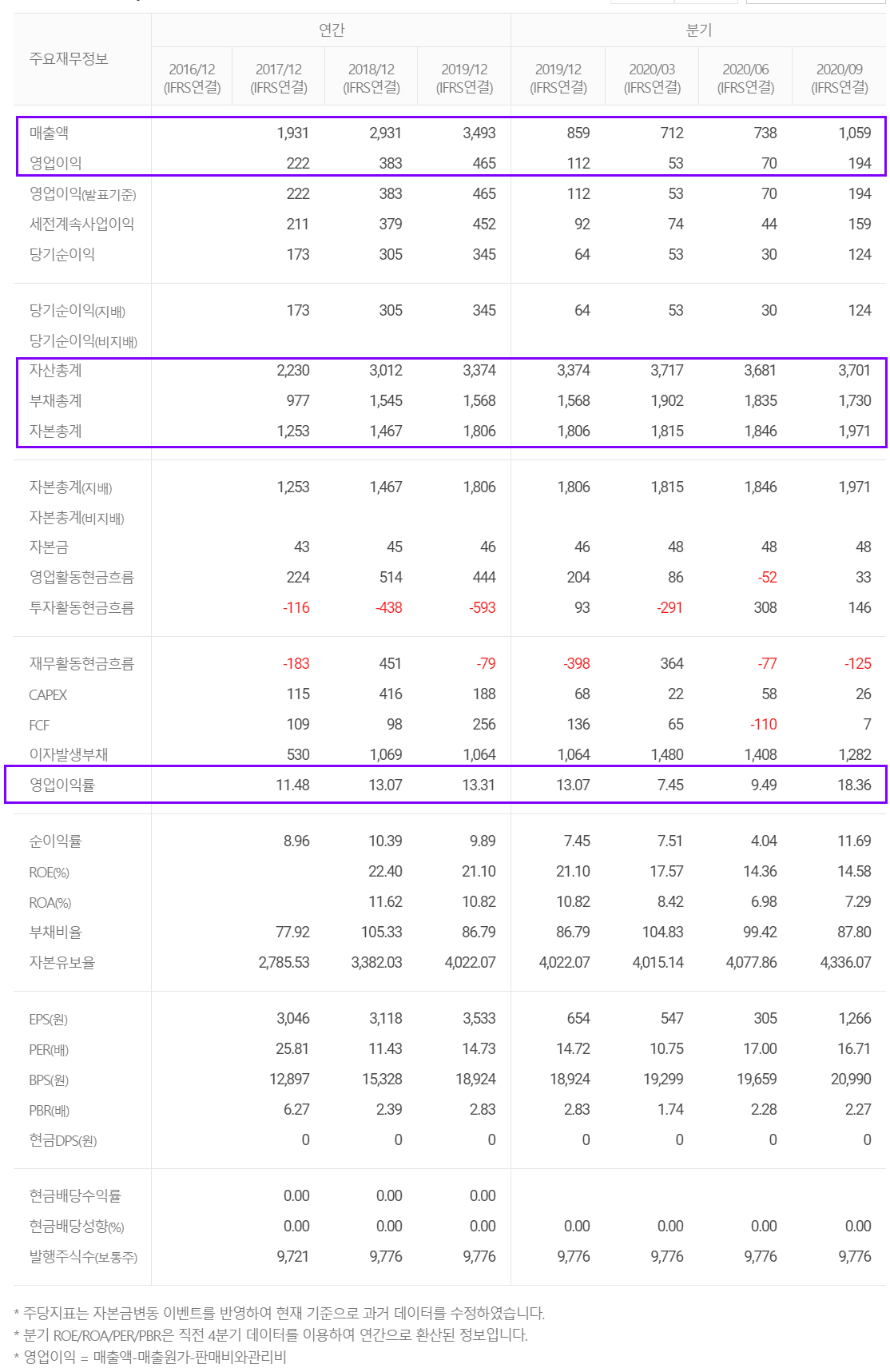 하지만 당사의 실적은 2020년 3분기를 기점으로 지속적인 증가세를 나타낼 것으로 추정되었습니다.