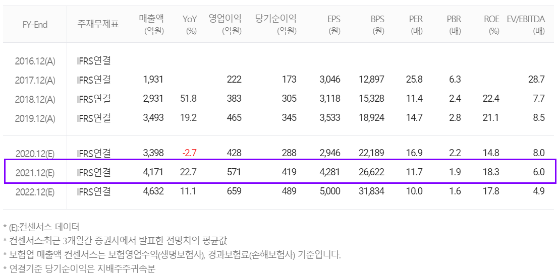 개인적인 목표가 설정은 2021년 컨센서스에 기반한 ROE, PER 및 과거 당사의 data를 참조하였고, 아래 투자포인트를 감안하여 산술한 개인적인 수치입니다.