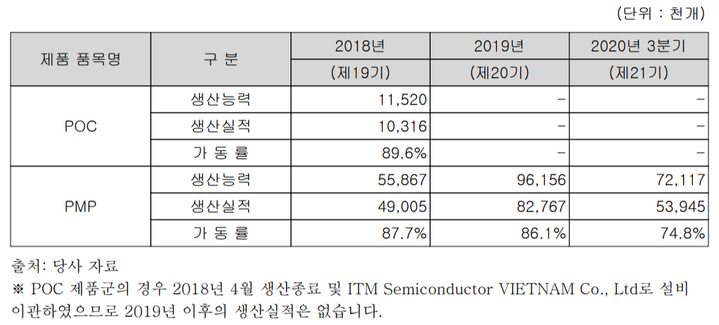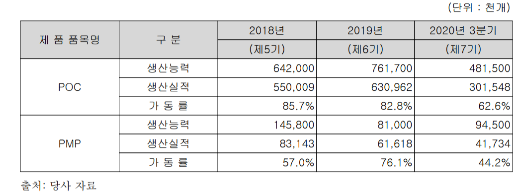 2020년 3분기 기준 PMP를 주로 생산하는 국내 오창 공장의 가동률은 74.8%로 기록되었습니다.