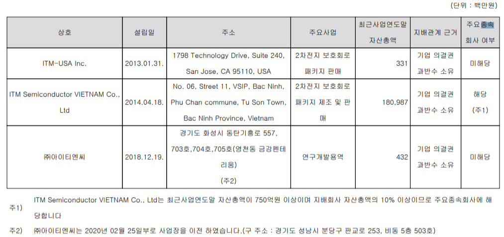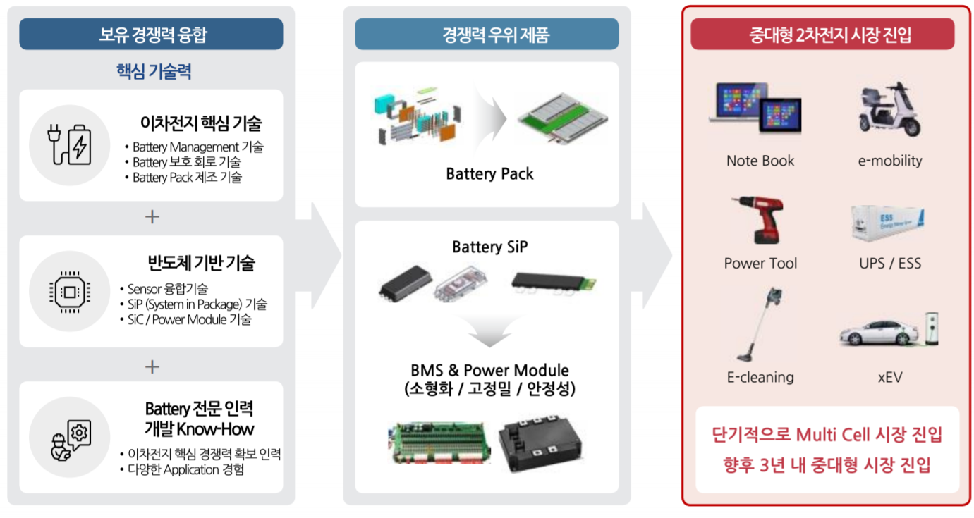 | 주요 품목 | 2차전지 보호회로, 배터리팩 및 센서 |