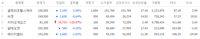 코스닥 시장, 카카오게임즈 시가총액 3위