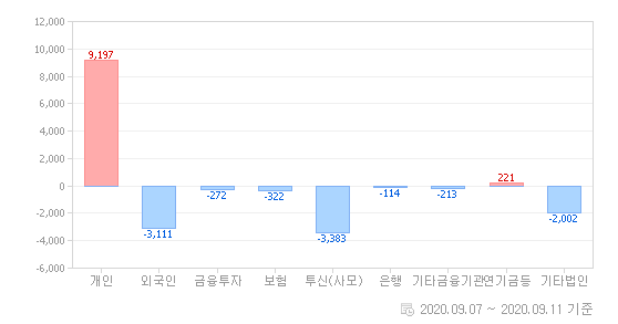 외국인과 개인은 각가 3112억 원, 4084억 원 순매도했고 반면 개인의 경우 9197억 원 순매수하면서 상승을 이끌었습니다.