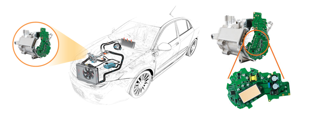 E- Compressor 모터 컨트롤러는 PHEV/EV의 Air-Condition을 위해 사용되는 E-Compressor의 구동 제어를 위해 개발된 All-In-One 솔루션입니다.
