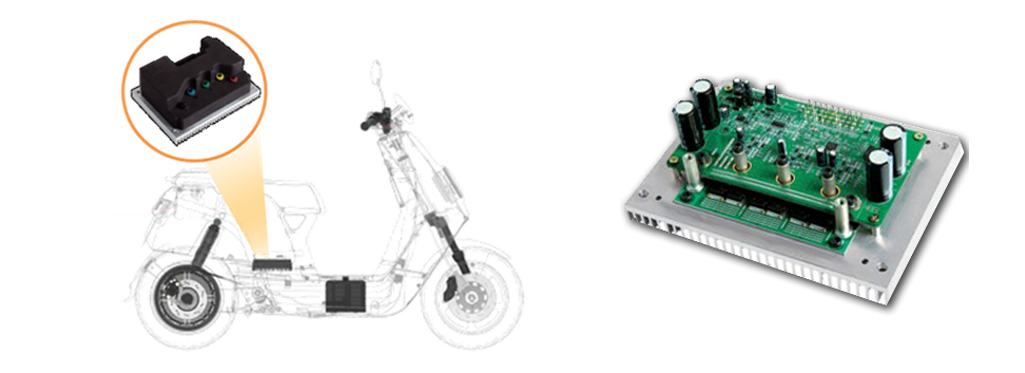 전기스쿠터 모터 컨트롤러는 전기스쿠터의 트랙션 모터를 제어하기 위한 컨트롤러로써, 노이즈 감소 및 효율 개선을 위한 벡터 제어 알고리즘을 적용한 솔루션입니다.