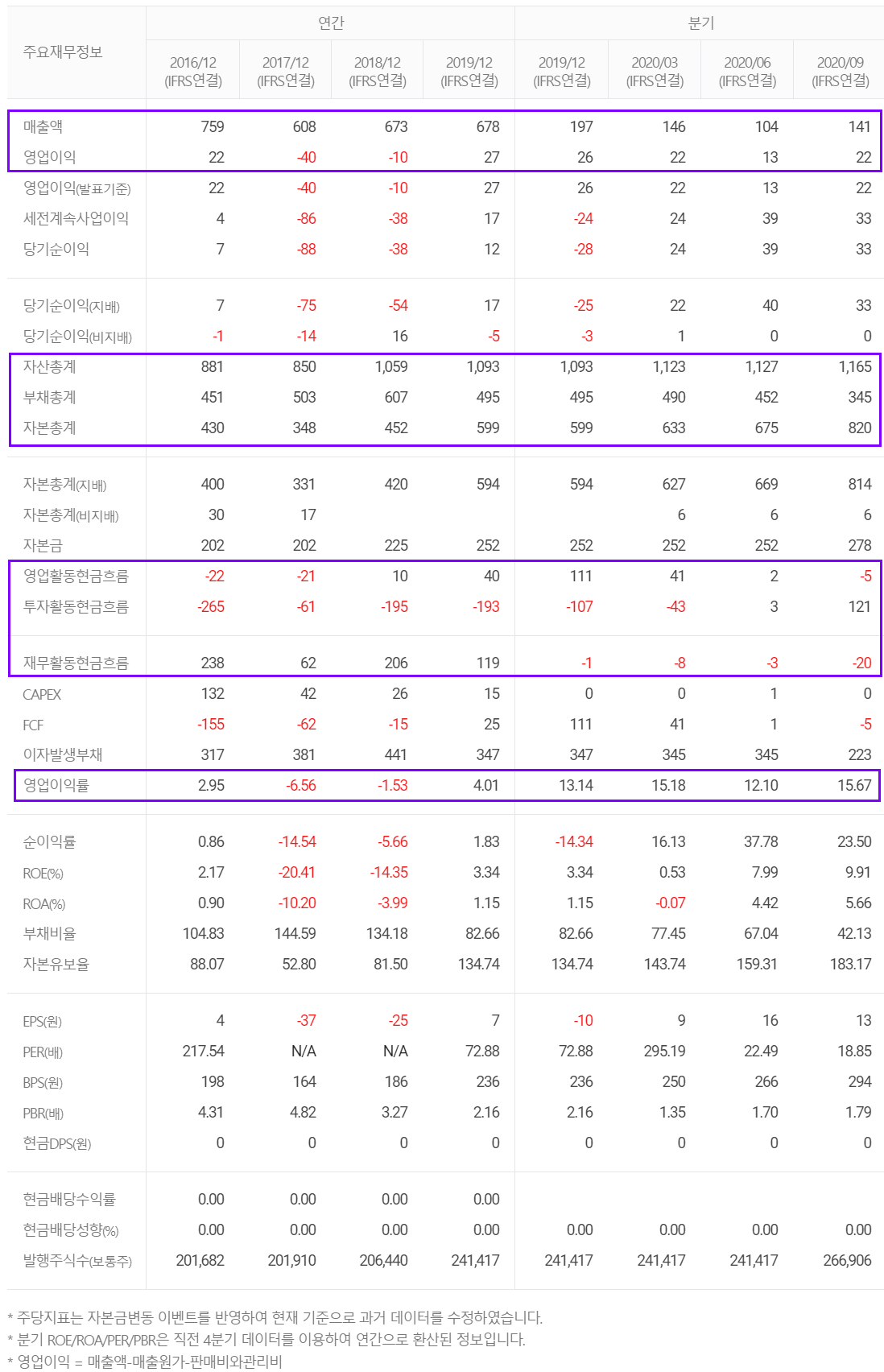 영업이익이 개선되는 추세에서 소폭의 현금 흐름은 개선될 것이라 추정됩니다. 영업 활동에서의 부족 자금은 일부 자산 매각을 통해 해결하려는 모습이 보입니다. 고무적인 것은 2020년 중국향 용역 매출로 인해 영업이익률이 크게 개선되었다는 점입니다. 중국 시정부와 Joint Venture를 통한 전기차 시장 진출이 확대될지 주목됩니다.