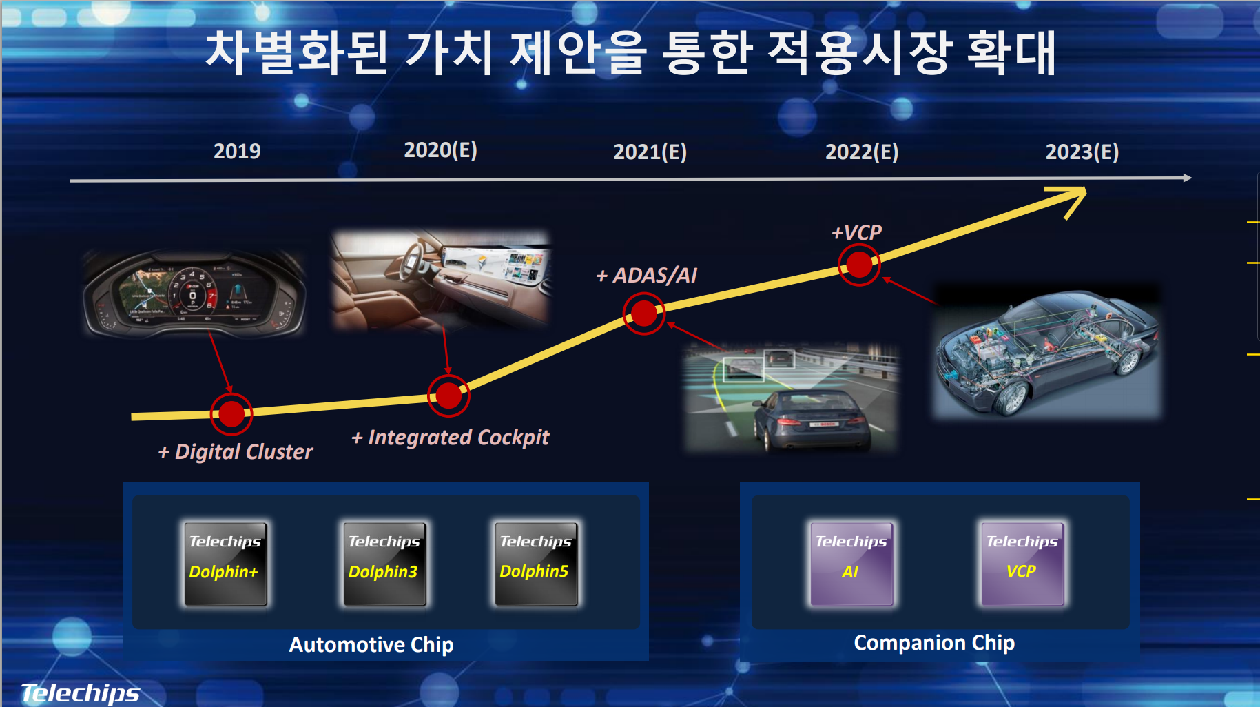 당사는 자율주행을 위한 첨단 운전자 보조 시스템, 즉 ADAS용 칩을 개발하고 있습니다. 고성능의 인공지능 프로세서 기반인 ADAS Chip의 뉴럴 돌핀(엔돌핀) Application Processor에 대한 개발이 이미 시작된 것으로 알려졌습니다.