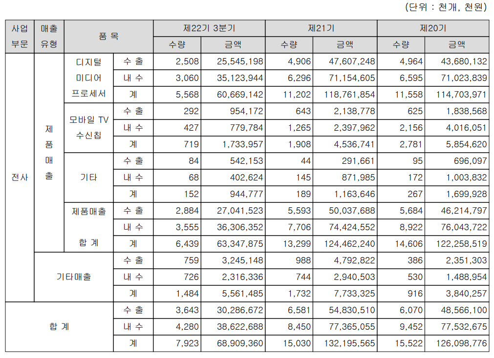 | 주요 품목 | 통신 및 멀티미디어 관련 칩 |