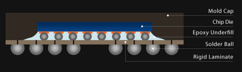 칩과 기판을 연결하는 방법에 따라 FBGA(Fine Ball Grid Array), FCBGA(Flip Chip BGA), BOC(Board On Chip) 등의 종류로 나누어집니다.
