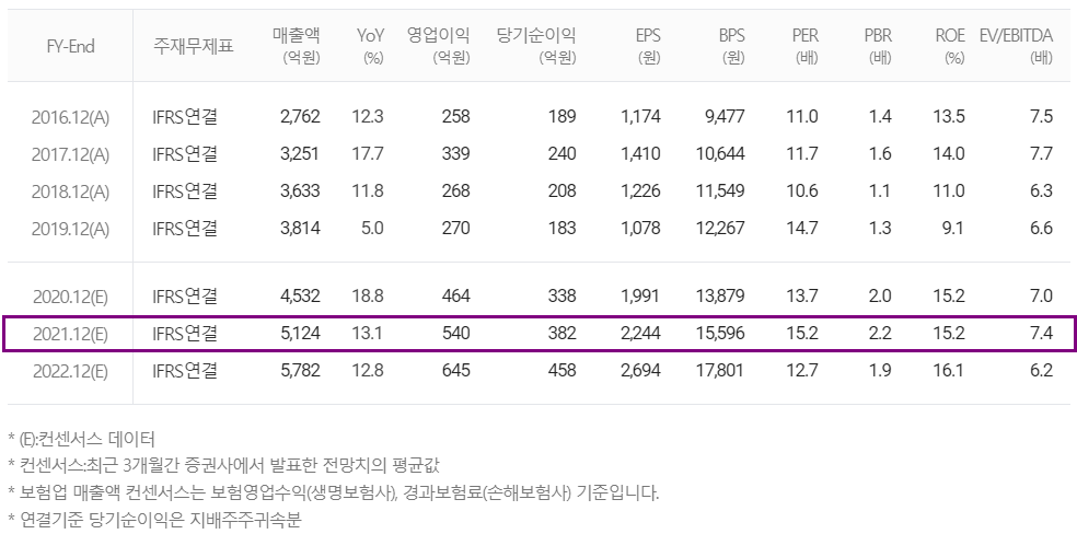 2021년에는 5,124억 원의 매출을 추정하면서 13.1% 증가하는 것으로 내다봤습니다. 주로 자동차 전장용 리드 프레임 수요 증가에 따른 매출 확대가 예상됩니다.