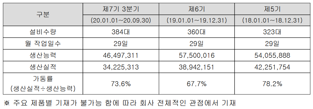반도체 경기가 둔화되었던 2019년보다 2020년 들어 회복하면서 전체적인 생산설비에 대한 가동률은 73.6%로 밝혔습니다.