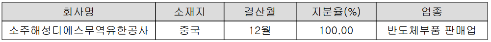 현재 당사의 종속기업에는 중국 소주해성디에스무역 유한공사 1개를 보유하고 있습니다.