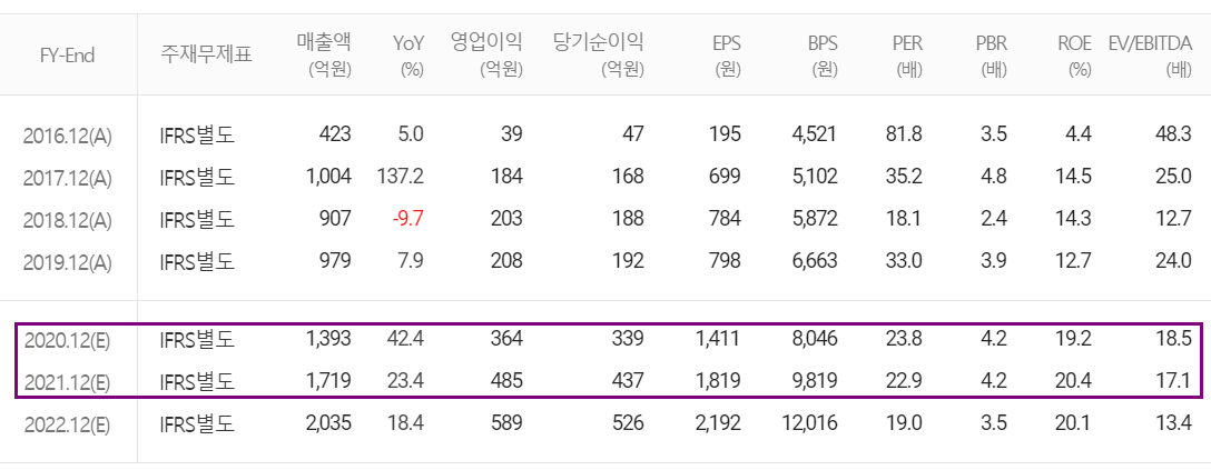 4분기 실적 발표를 앞운 상황에서 발표된 잠정 실적 기준 2020년 연간 매출액은 1,408억 원으로 전년 동기 대비 43.8% 증가하는 것으로 나왔습니다.