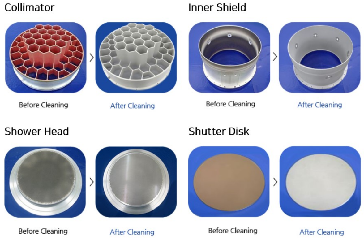오염된 부품은 당사의 프로세스에 의해 세정 작업을 하여 재사용이 가능한 상태를 유지시켜 ㅈ며, 손상된 표면의 안정성을 함께 제공합니다.