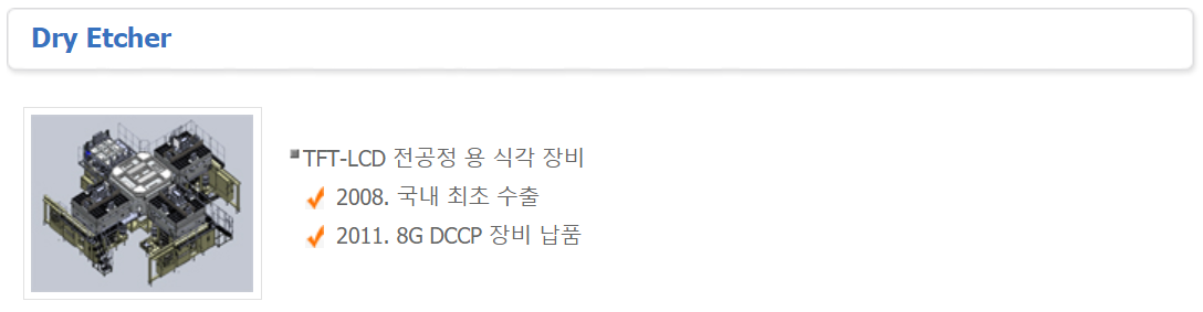 2007.03 | 국내 최초 TFT-LCD용 Metal Dry Etcher 납품 (국내) |