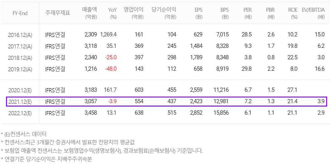 컨센서스 기준 2020년 연매출 3,183억 원, 영업이익 603억 원을 추정했으나, 당사의 공시에 따르면 잠정 매출은 3090억 원, 영업이익은 503억 원을 기록할 것으로 발표했습니다. 잠정 기준 전년 동기 대비 매출액은 154% 증가, 영업이익은 252% 증가했습니다. 2021년은 현재 수주잔고 약 700억 원 포함 3,057억 원의 매출액으로 전년 대비 3.9% 감소하지만 영업이익은 554억 원으로 10.5% 증가할 것으로 추정했습니다.