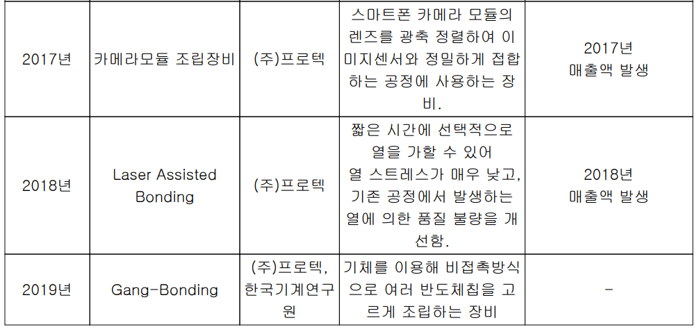 프로텍 최근 연구 개발 실적