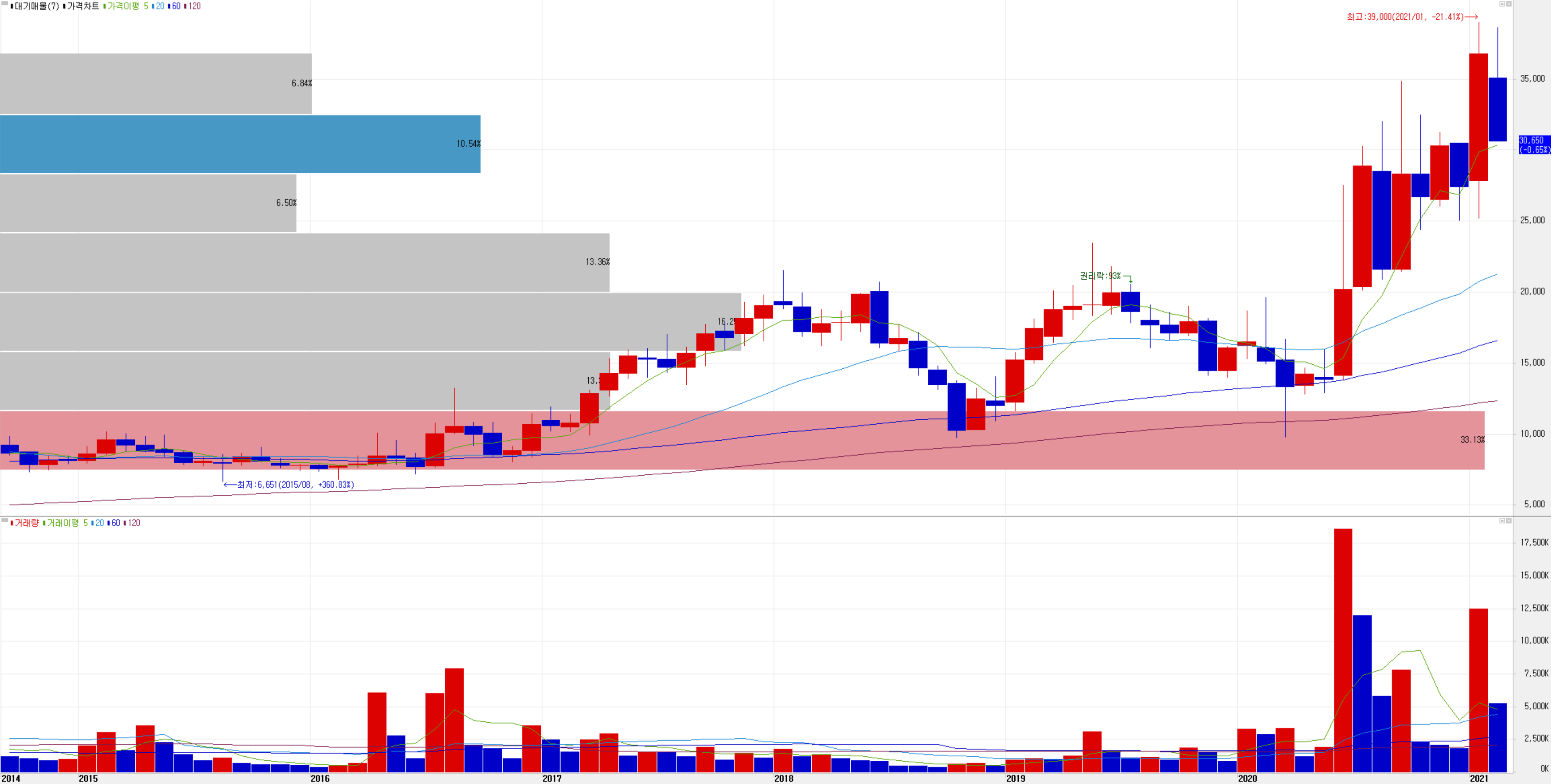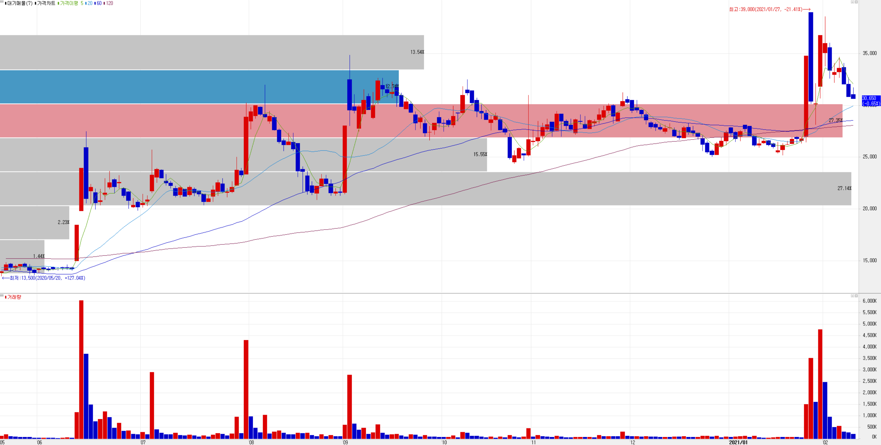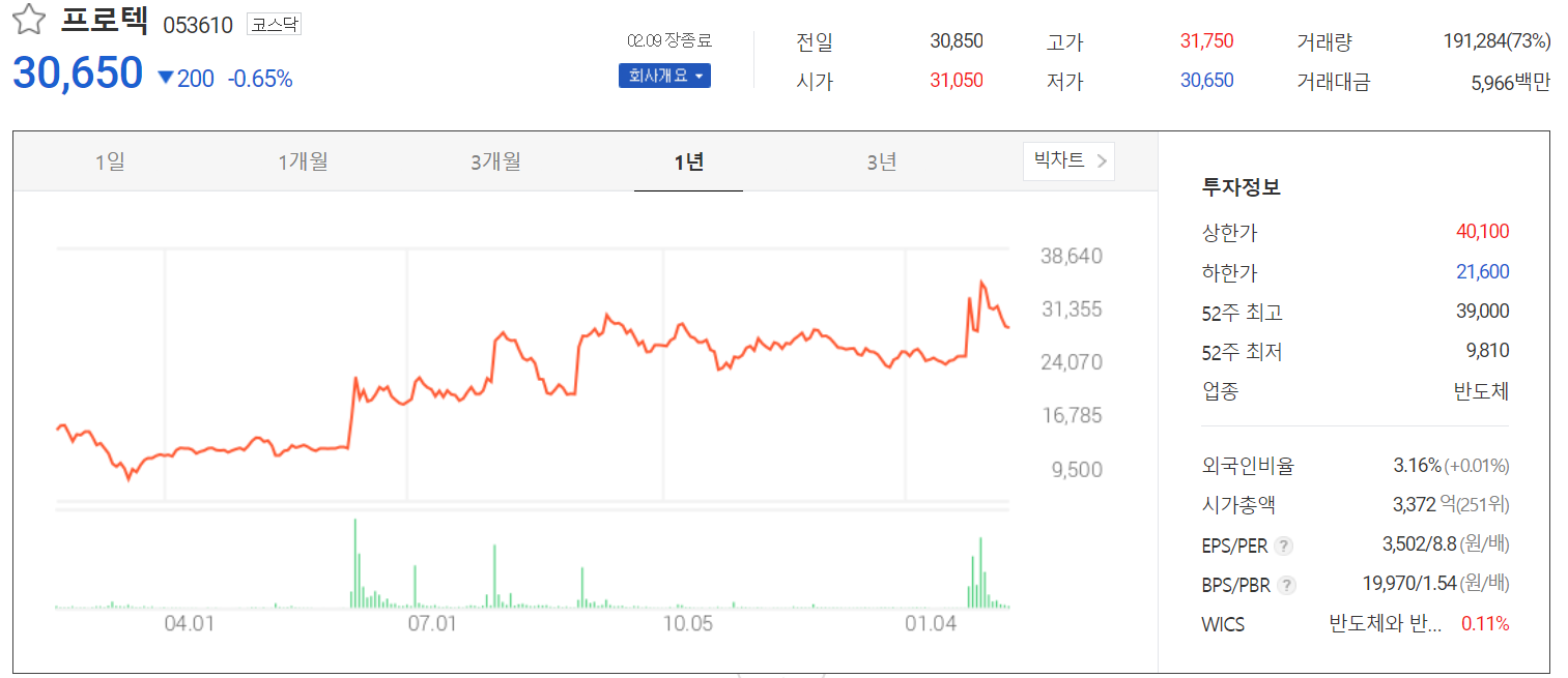 2월 9일 장종료 기준 30,650원에 거래를 마쳤습니다. 외국인 비중은 3.16%, 시가총액 3,372억 원으로 코스닥 시총 상위 251위 종목입니다.