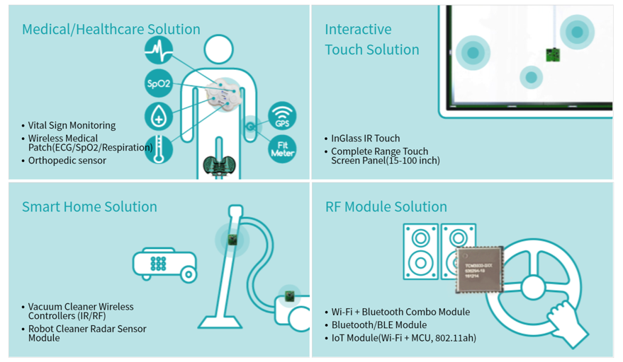 의료 분야 외에도 홈오토메이션, 와이파이와 블루투스를 함께 집적한 무선 솔루션 모듈 등 기존의 개별 솔루션에 대한 PBA 모듈화된 솔루션을 공급하고 있습니다.