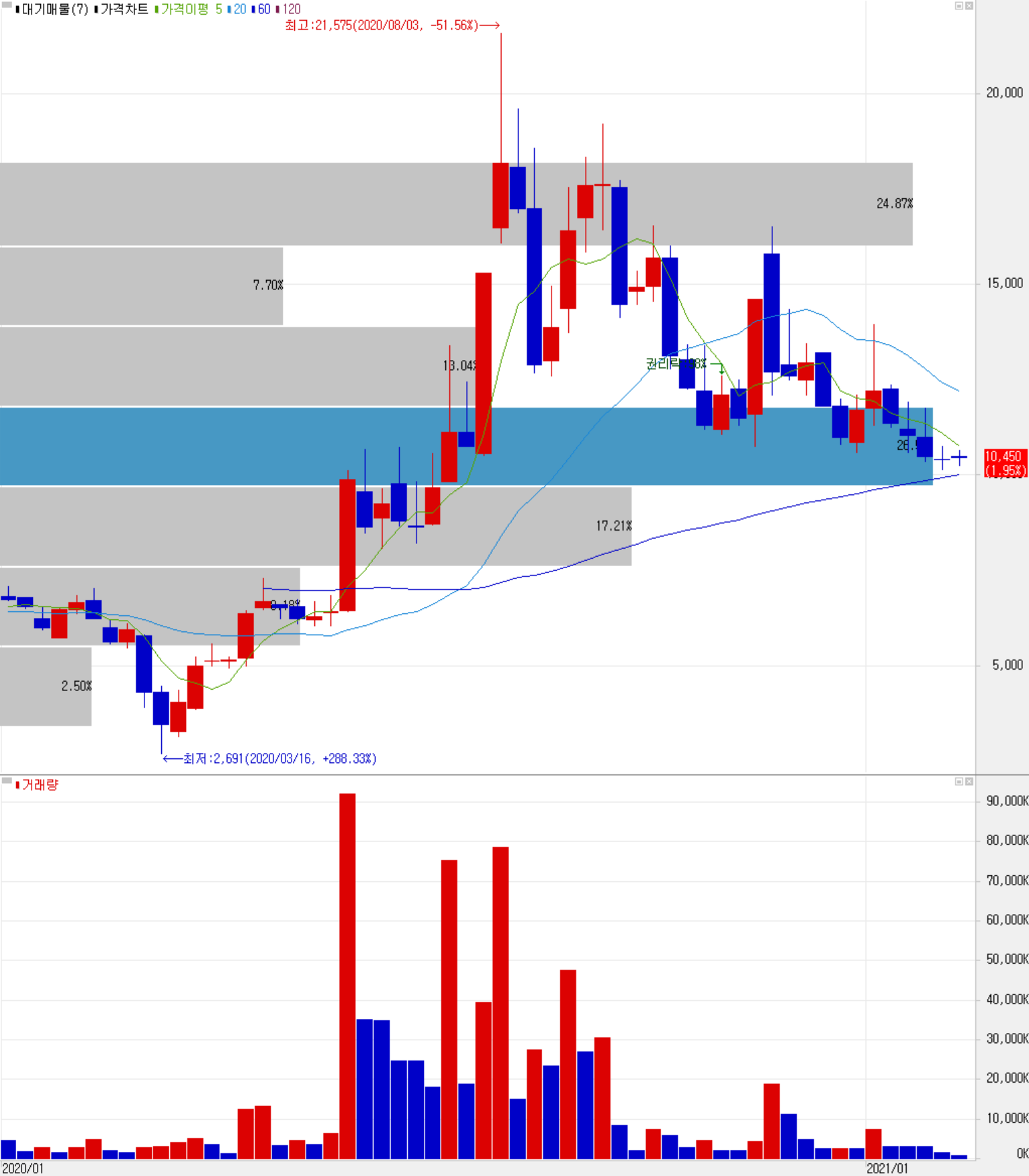 당사의 주가는 2월 실적 발표 이후부터 중기 하락 추세를 보이는 모습입니다. 2월 10일 장 종료 기준 10,450원에 거래를 마쳤습니다. 외국인 비중은 22.33%로, 시가총액 6,888 억 원으로 코스피 상위 268위 종목입니다.