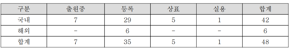 당사의 사업과 연관된 지적재산권으로 현재 29건의 국내 특허와 6건의 해외 특허를 보유 중이며, 7건의 국내 특허를 출원 중에 있습니다.